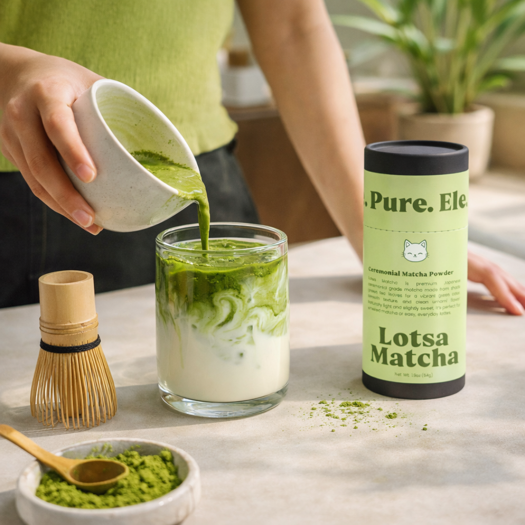 Lotsa Matcha is premium Japanese ceremonial-grade matcha with a vibrant green color and smooth, naturally sweet flavor. Perfect for whisked matcha or easy, everyday lattes.